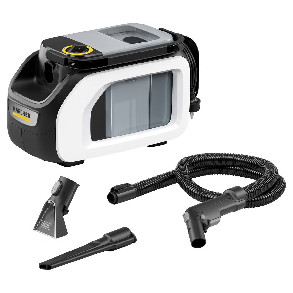 Lei denne effektive tekstilrenseren for tepper, møbler, madrasser og mer – perfekt for dyprens og flekkfjerning! Spesifikasjoner: - Spray-ekstraksjonsmetode renser dypt i fibrene med minimal restfuktighet (rask tørking) - Kompakt design med 2-i-1 vannbeholder, hygienisk skyllesystem - Inkluderer møbel- og fugemunnstykke + 100 ml rengjøringsmiddel - Lang og fleksibel sugeslange, enkel oppbevaring - Vekt: ca. 5–6 kg.